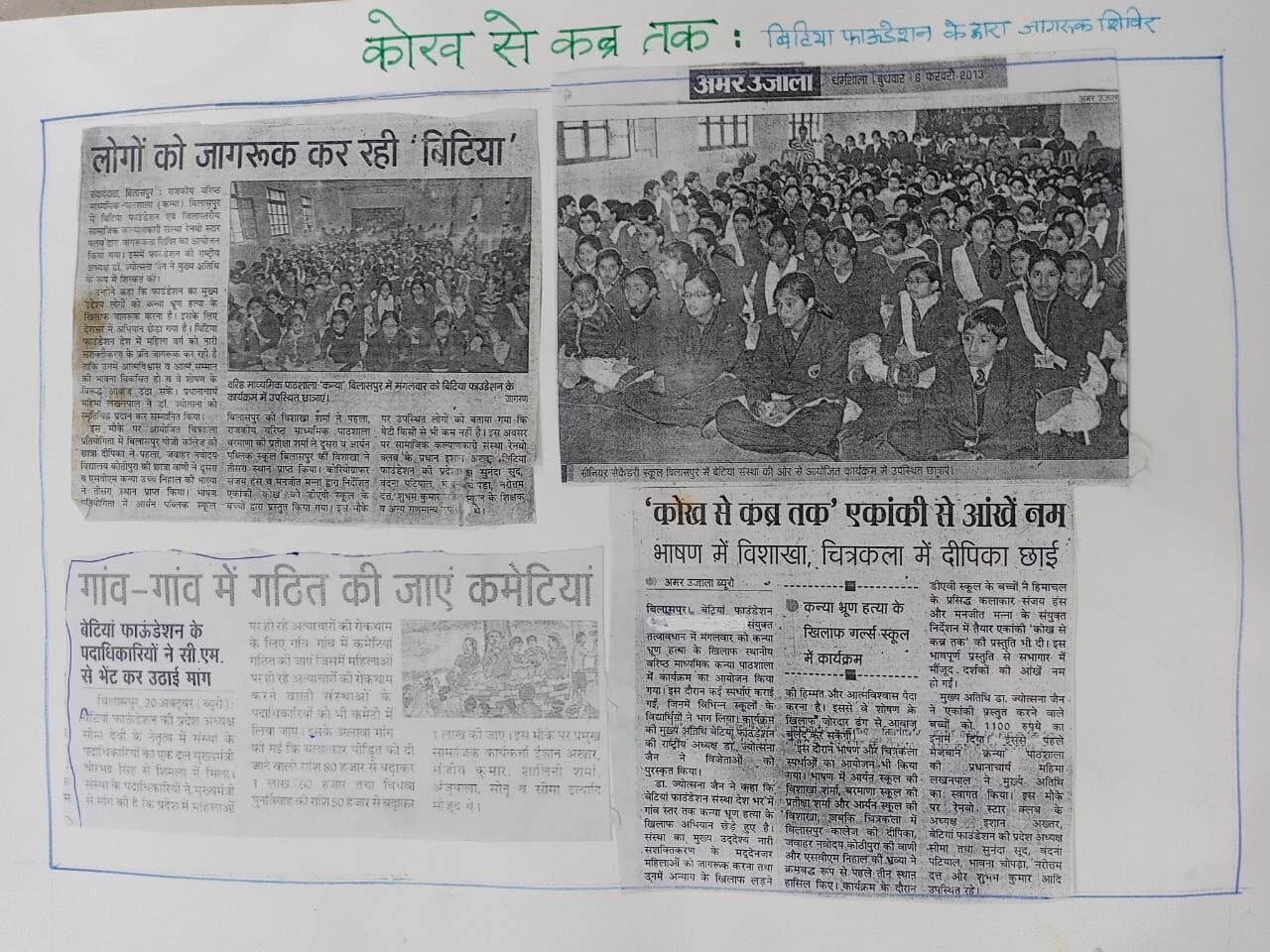 बिटिया फाउंडेशन की उपलब्धियों की चित्रात्मक यात्रा हमारे निरंतर प्रयासों को दर्शाती है, जिनसे भारतभर में महिलाओं और बच्चों को सशक्त बनाया गया है। हर चित्र आशा, सशक्तिकरण और बदलाव की कहानी कहता है—एक ऐसे समाज की ओर जो समानता, करुणा और अवसरों पर आधारित हो।